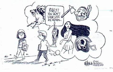 At these times, communities are different, tribal identities are different, and the health and well-being are different, despite the racist persistence of mascots. To reinstate either or both of these Indian images/icons is to show dominance over culture. The psychological impact that it will have on the larger non-Native community prompts a non-verbal understanding that Native People are trapped in time and can be controlled and manipulated. At the same time, the psychological impact on Native individuals and communities is a slanderous, derogatory statement that even though Native People are still present, they don’t matter.